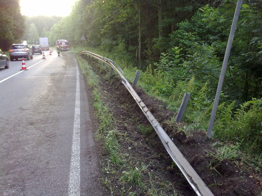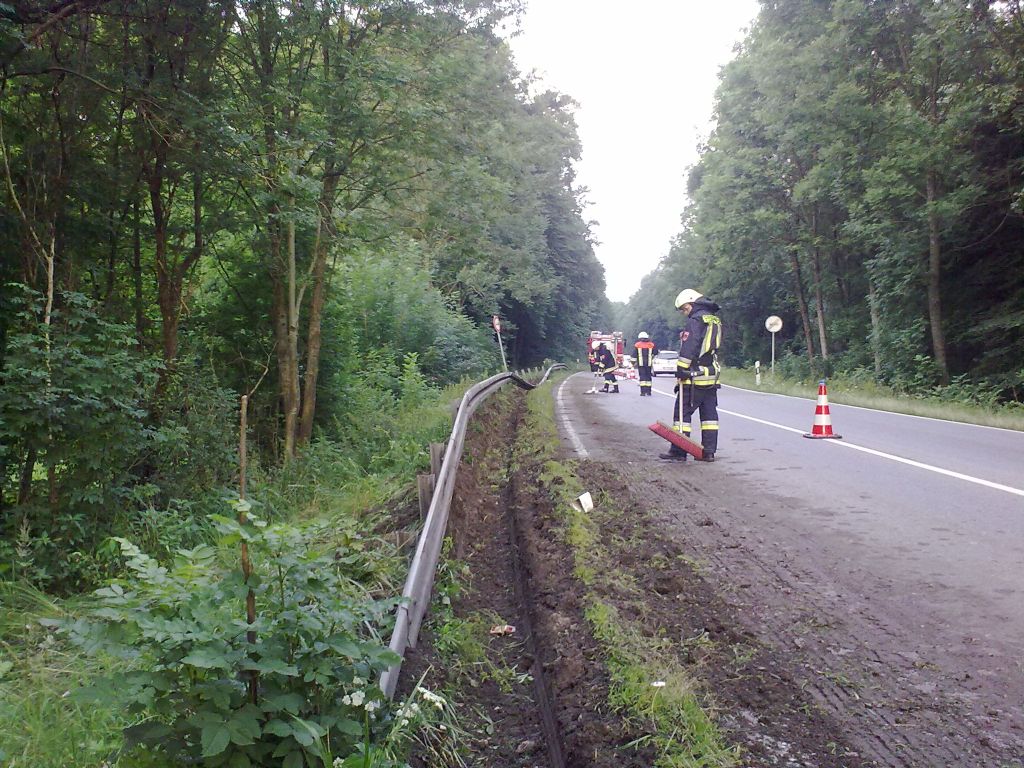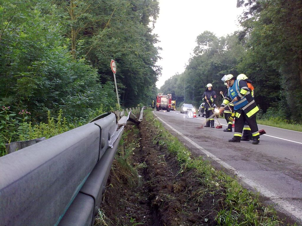Fahrbahnreinigung nach VU, LKW in Leitplanke