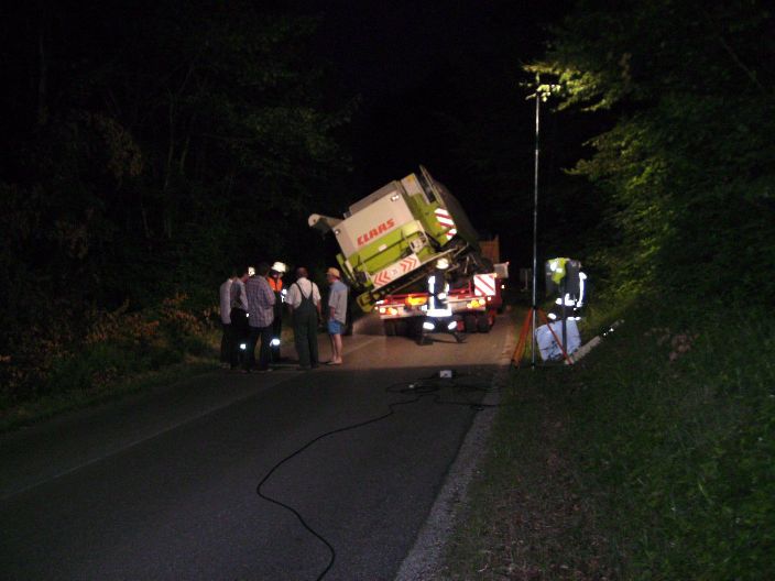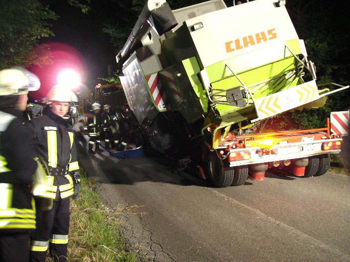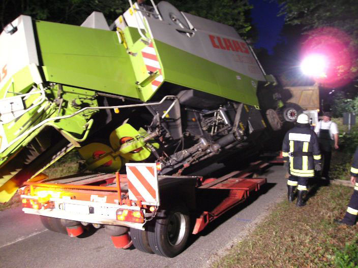 | Meldung: | Mähdrescher von Anhänger gekippt | ||||