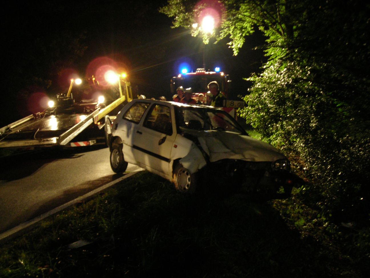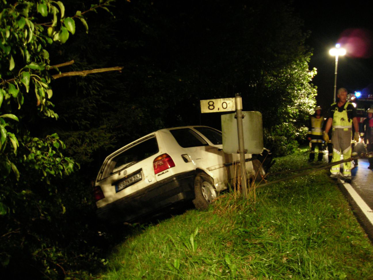 Text: | Grafrath/Schöngeising – Eine 28-jährige Mammendorferin ist mit ihrem Golf auf der B 471 zwischen Grafrath und Schöngeising die Böschung hinuntergestürzt. Der Wagen überschlug sich im Straßengraben und durchtrennte einen 15 Zentimeter dicken Baum. Der Polizei gegenüber gab die Frau an, von einem anderen Auto geblendet worden zu sein. Sie erlitt lediglich einen Schock. Quelle: Fürstenfeldbrucker Tagblatt: http://www.merkur-online.de/regionen/ffb/index.html | |||