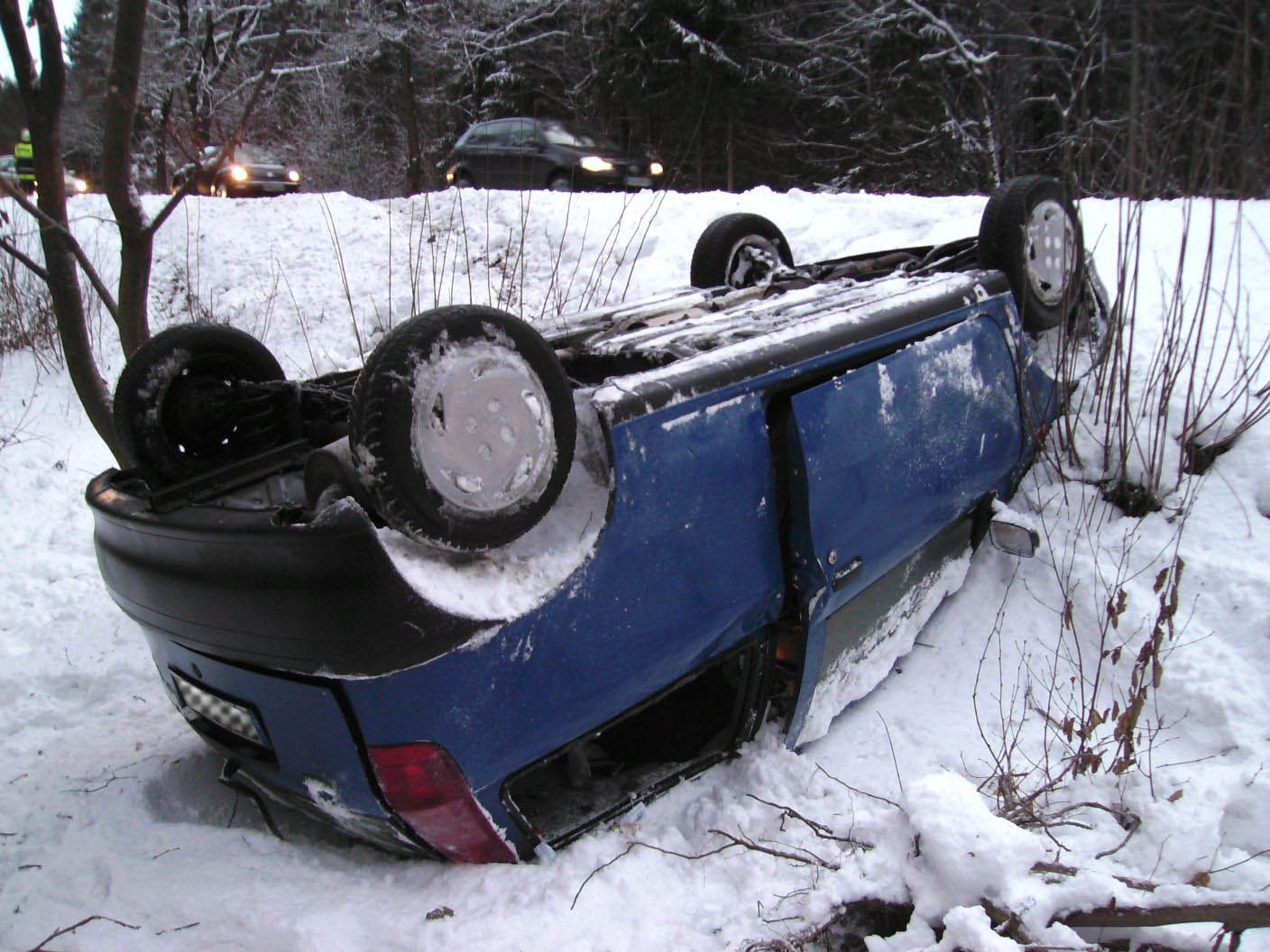 Verkehrsunfall: PKW auf dem Dach im Graben